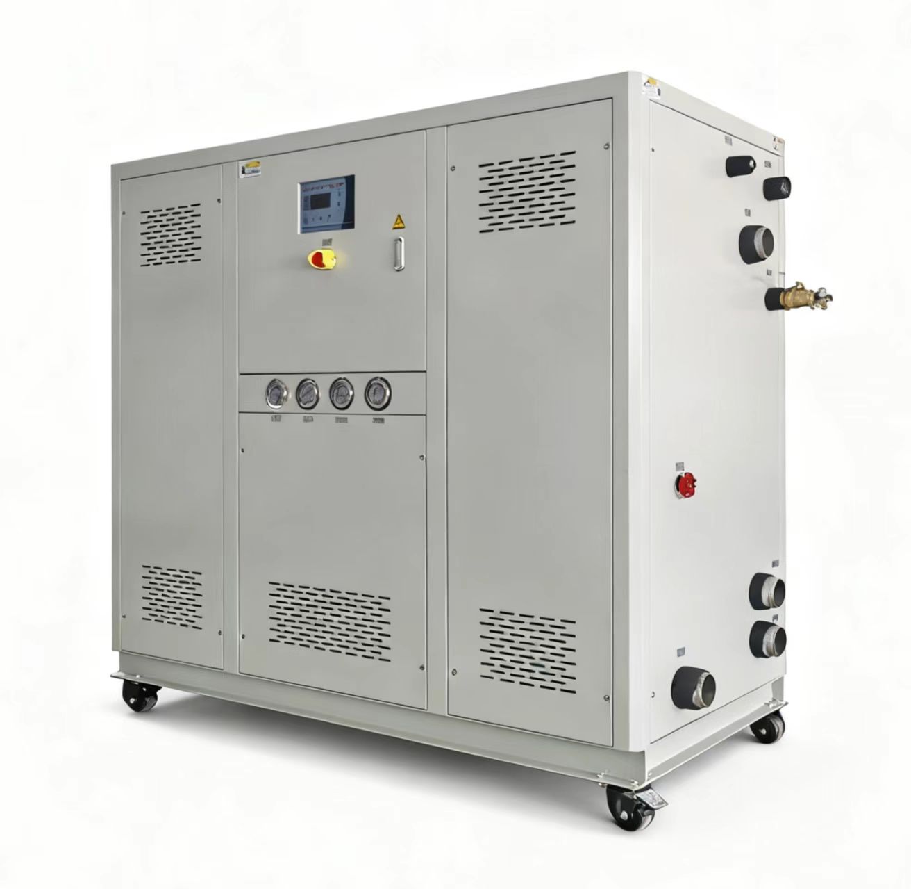 采用品牌压缩机头,铜管采用无氧焊接法。RS485通讯功能,实现自动化管理(选购),加热功率切换功能,304不锈钢一体管路,减少管阻及锈垢,采用高级组件,使用年限长,电器采用施耐德、欧姆龙、佳乐等材料。控制方式采用微电脑或PLC控制(选购)。安全保护完善,故障显示,品牌蒸发器及冷凝器,可节省能源30%以上。HR-20ACH以上采用两组压缩机头,可单独或共同使用,温度控制范围:出水温度+120~-30℃。