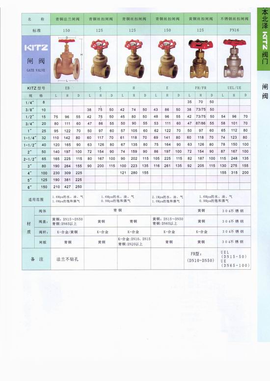 日本北泽KITZ铜闸阀:是指关闭件(闸板)沿通道轴线的垂直方向移动的阀门,在管路上主要作为切断介质用,即全开或全关使用。内螺纹连接的闸阀与管端相连接,需控制管端外螺纹长度尺寸。以免管端过量旋入以致顶压闸阀管螺纹内端面,造成阀座变形而影响密封性。法兰连接阀门的法兰与管端的法兰不仅与规格尺寸一致,而且需公称压力一致。
